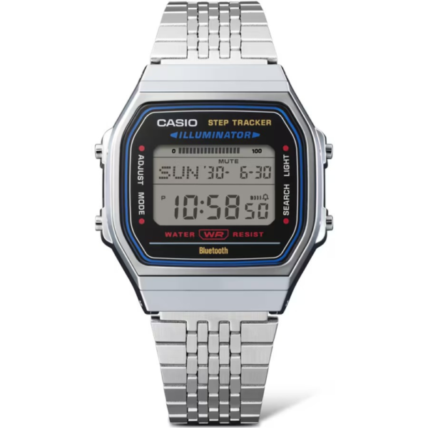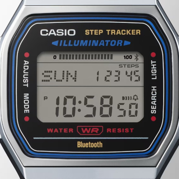 Embrace retro vibes with a modern twist in the Casio Vintage Step Tracker Bluetooth ABL-100WE-1A. Designed with 80s-inspired flair, this digital watch features a sleek chrome-plated resin case and a trendy translucent resin band, all packed into a lightweight 25g frame for everyday comfort.