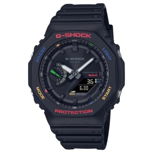 Chic, tough, and unmistakably modern — the G-SHOCK GA-B2100FC-1 blends translucent resin styling with the classic octagonal design and rugged Carbon Core Guard structure. Lightweight, shock-resistant, and water-resistant up to 200 meters, it’s a fashion-forward G-SHOCK built for everyday durability.